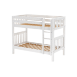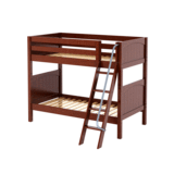The medium bunk bed is the Maxtrix best seller for a reason! Classic stacked design is a space-saving way to sleep two comfortably. Medium height = more space between beds, but still safe enough little ones + fits average ceilings. Option for space-saving straight ladder or extra-safe angle ladder.