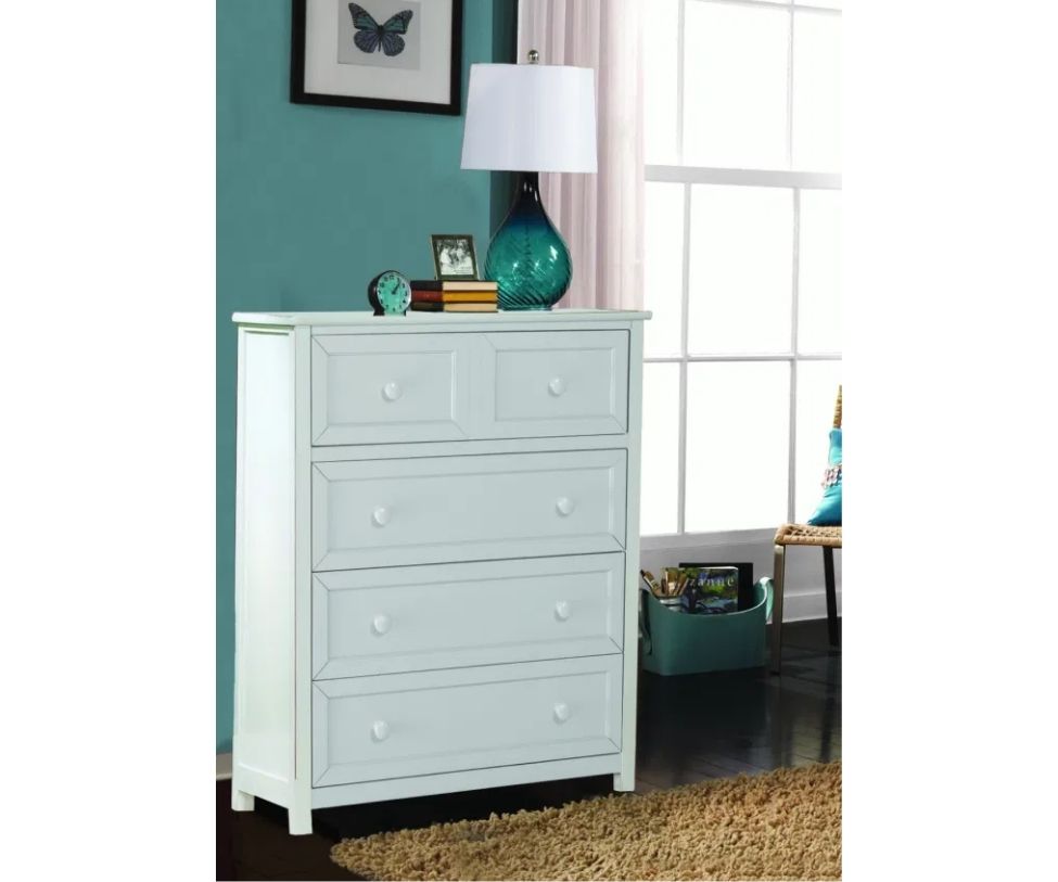 Extra-deep drawers provide ample storage space for clothes, bed linens, and more. Round wooden drawer pulls are easy for little hands to grasp and use.