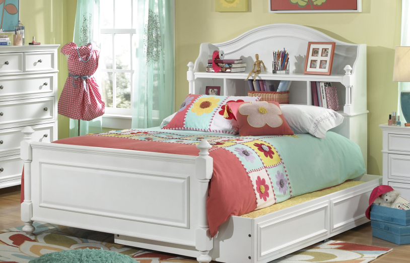 Get maximum storage without compromising style with the Madison Bookcase bed. Available in White. Storage Headboard offers 4 shelves, a hidden lift lid storage area and cord access.