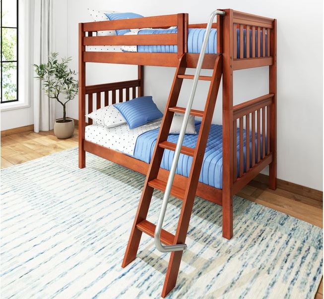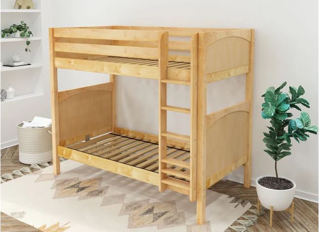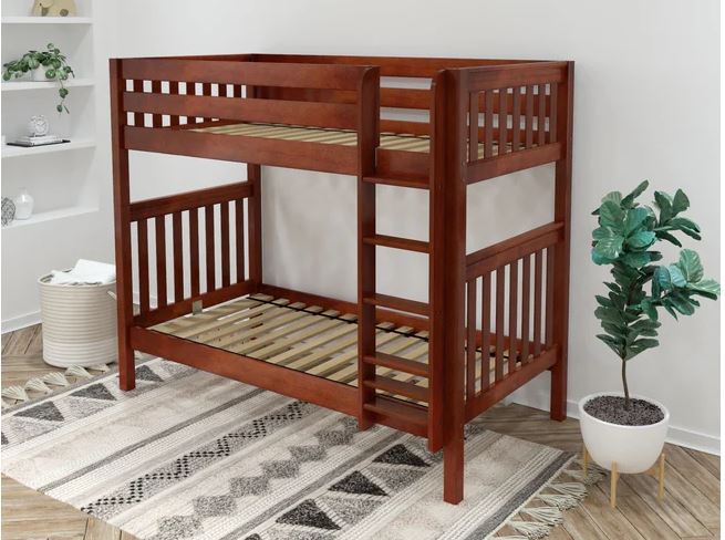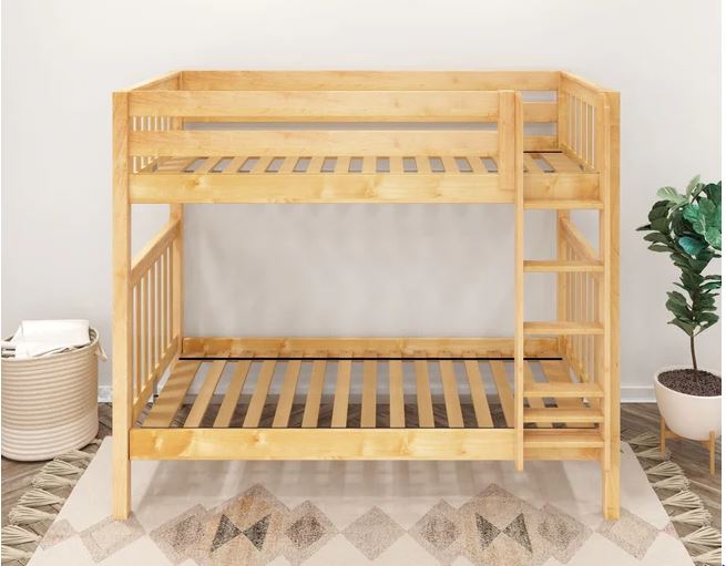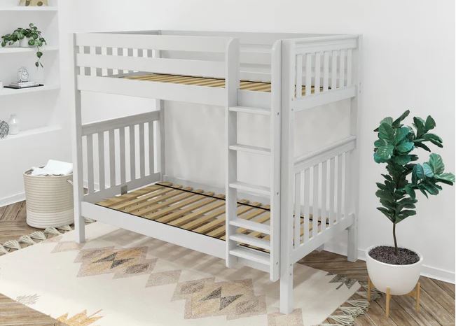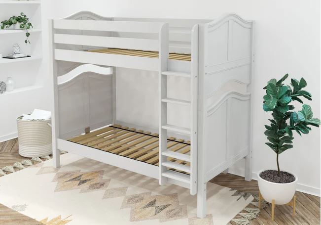 Classic stacked design saves valuable floor space. Patented Rock Lock system ensures no wiggling and keeps bunk beds super sturdy.