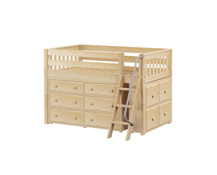 Our classic low loft bed with angled ladder becomes the ultimate storage cube! Raised bed = space underneath. Fill with matching case goods based on your needs. Each piece is freestanding so you can use separately for years to come.