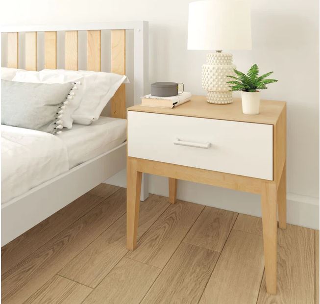 Bring stylish storage to your bedroom with our Modern 1 Drawer Nightstand. Sleek and modern, this nightstand features a bright white and natural wood finish that adds a light and airy look to any space. The solid wood soft close drawer has plenty of space for all your bedtime essentials and features a metal drawer glide for a smooth, effortless roll. This nightstand is easy to assemble with instructions, tools, and hardware included. With clean lines and a fresh two-tone finish, this nightstand complements the contemporary look of our Modern Collection. Bring modern elegance to any bedroom with our Modern 1 Drawer Nightstand. These nightstands come with a fully assembled frame. The legs of the nightstand will need to attached to the nightstand frame. Inside you'll find super detailed instructions that will walk you through every step, plus we've got all the tools you need to get the job done. Adding awesome style to your favorite spots has never been easier.